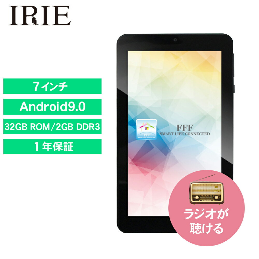 7インチ タブレット wi-fiモデル Android 9.0 本体 新品 32GB 2GRAM GPS FM搭載 高性能CPU 7型 タブレットPC wifi 格安 アンドロイド skype ZOOM IRIE FFF-TAB7 1年保証 送料無料