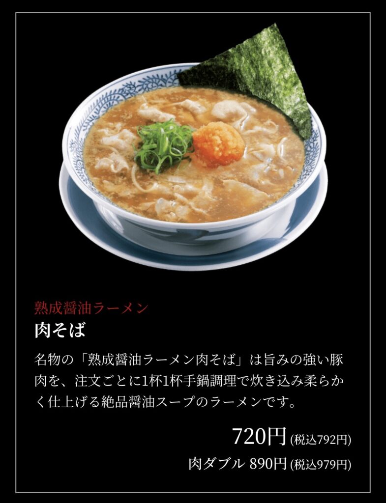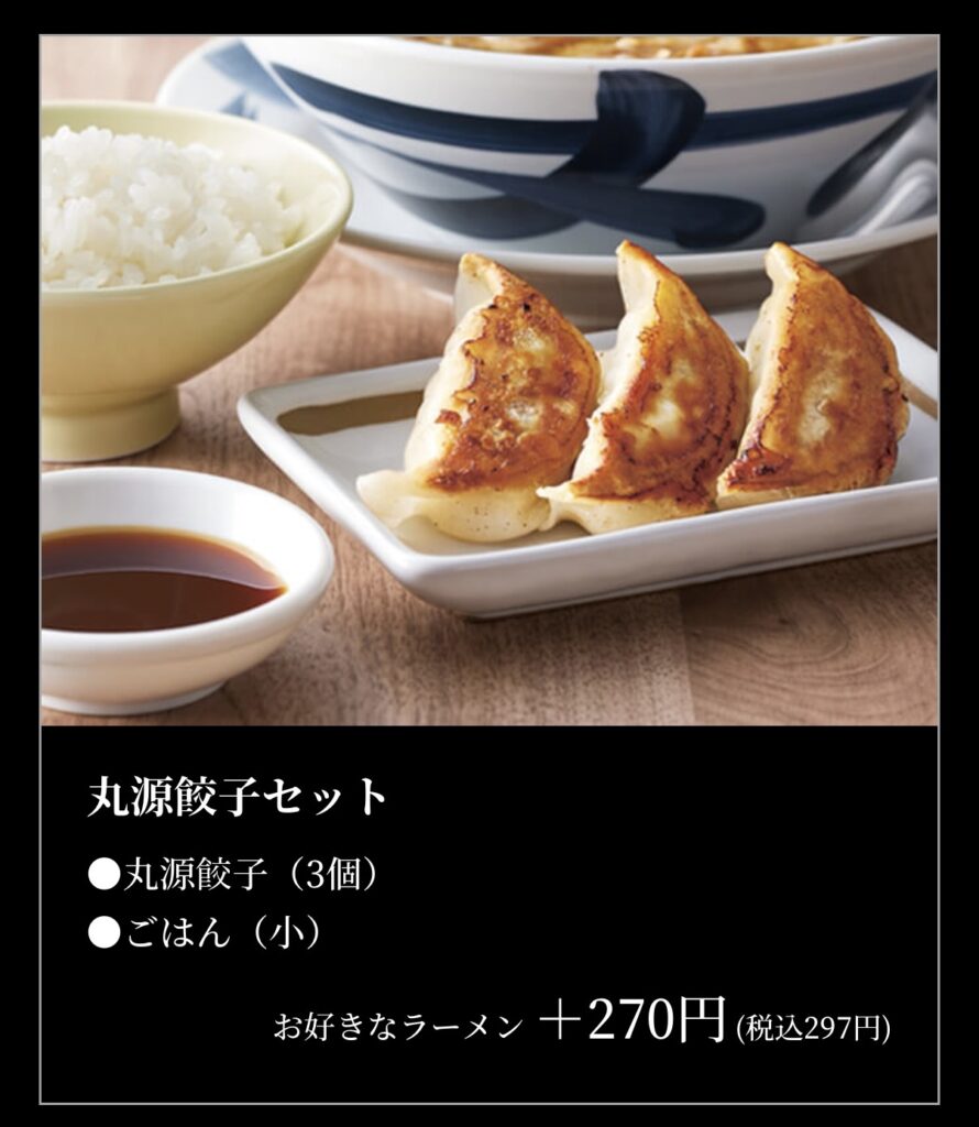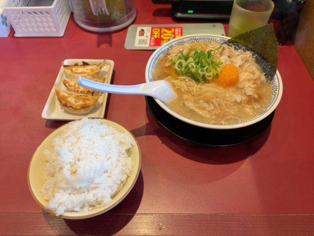 何を注文しようかなと迷いましたが、この後人と会う予定だったので、定番の「肉そば」の大盛りと「丸源餃子セット」のご飯中もりにしました。