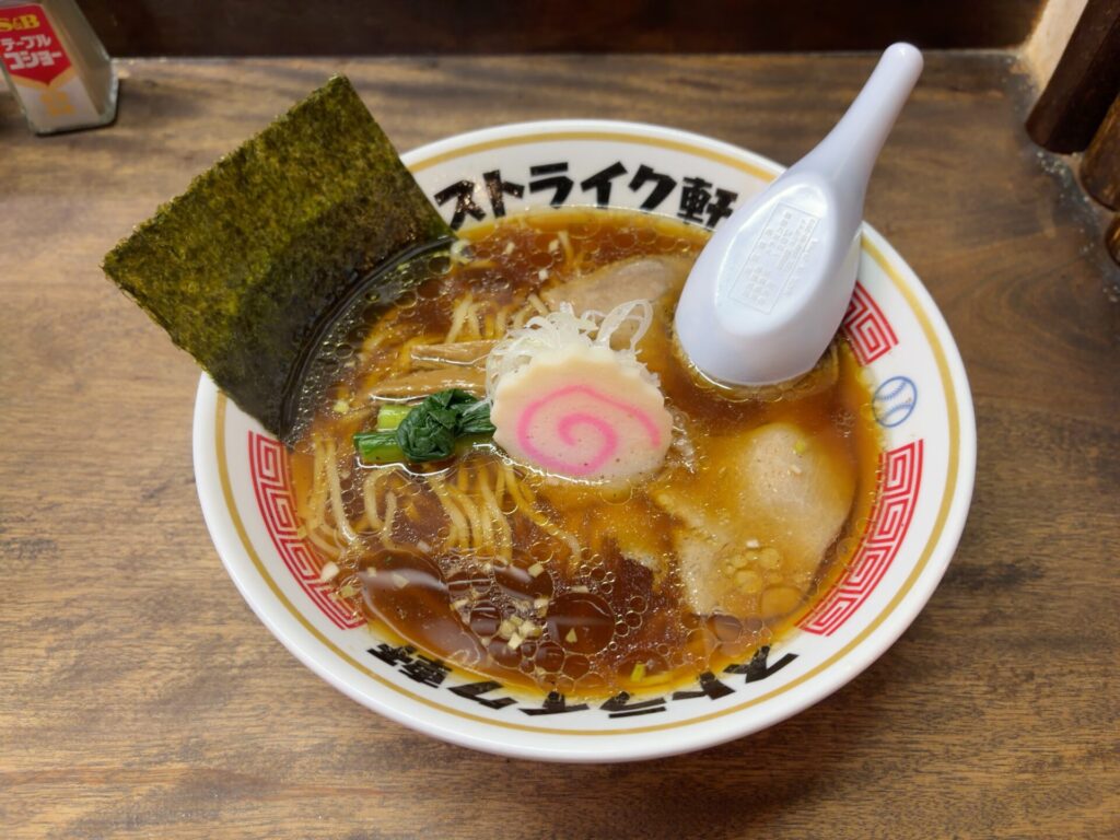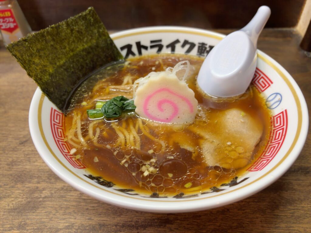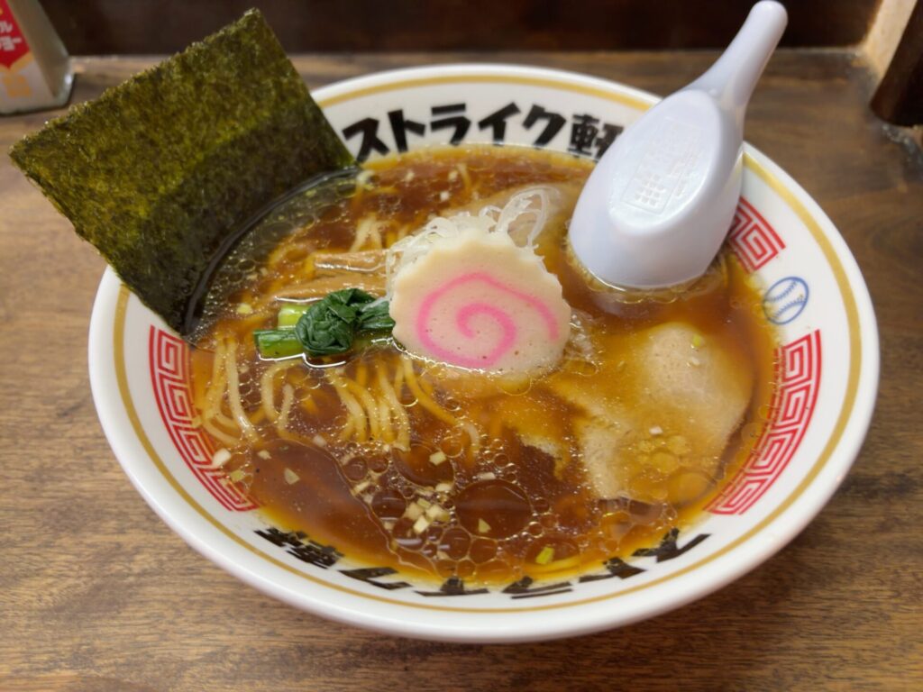 【ストライク軒】素材にこだわった濃いめだけど優しい醤油ラーメン!スープとご飯合って美味しい!