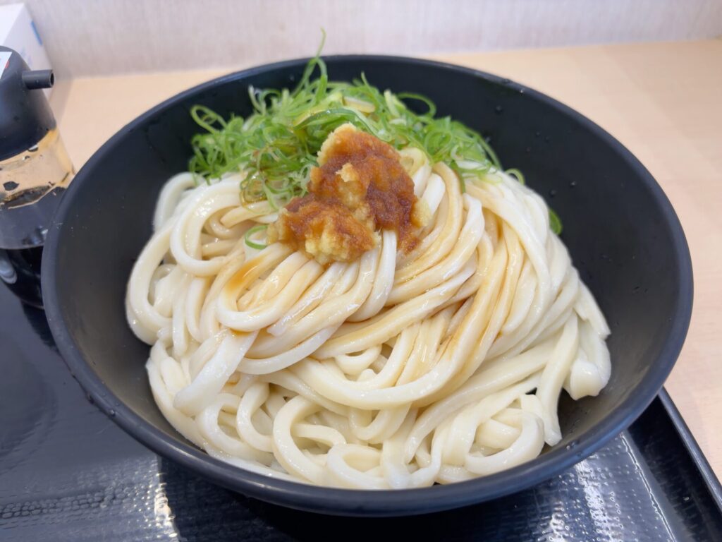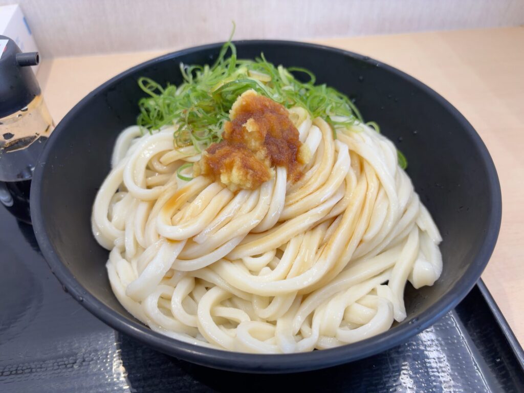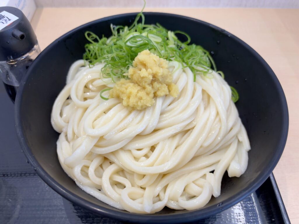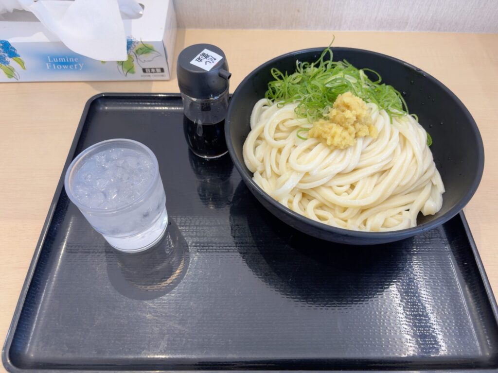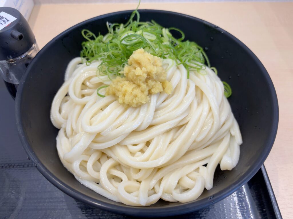「醤油うどん」ですので「ネギ」と「生姜」をトッピングさせて頂きました。